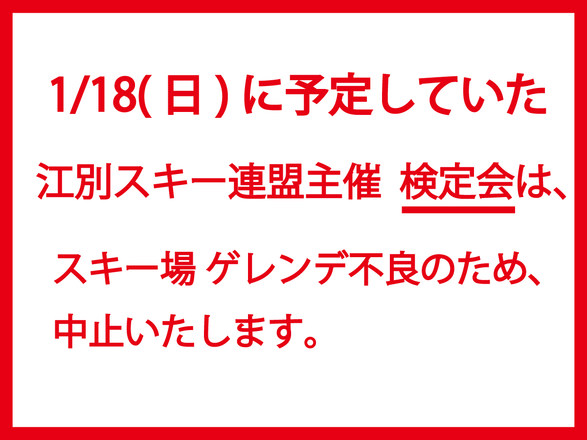 ● 1/18(日)の江別スキー連盟主催 「検定会」は中止いたします。