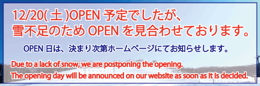 スキー場の営業時間は、決まり次第コチラのページで公開します。
