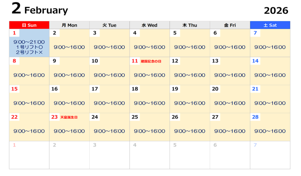 ※運行リフトの予定は、決まり次第コチラのページにてご案内いたします。
