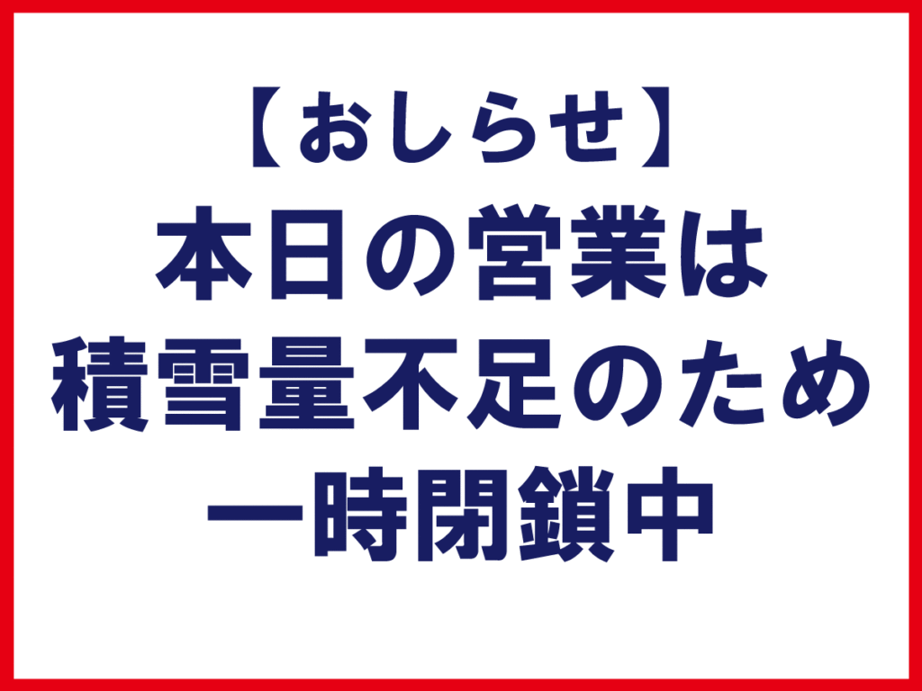 積雪量の低下のため、本日のスキー場は一時閉鎖とさせていただきます。